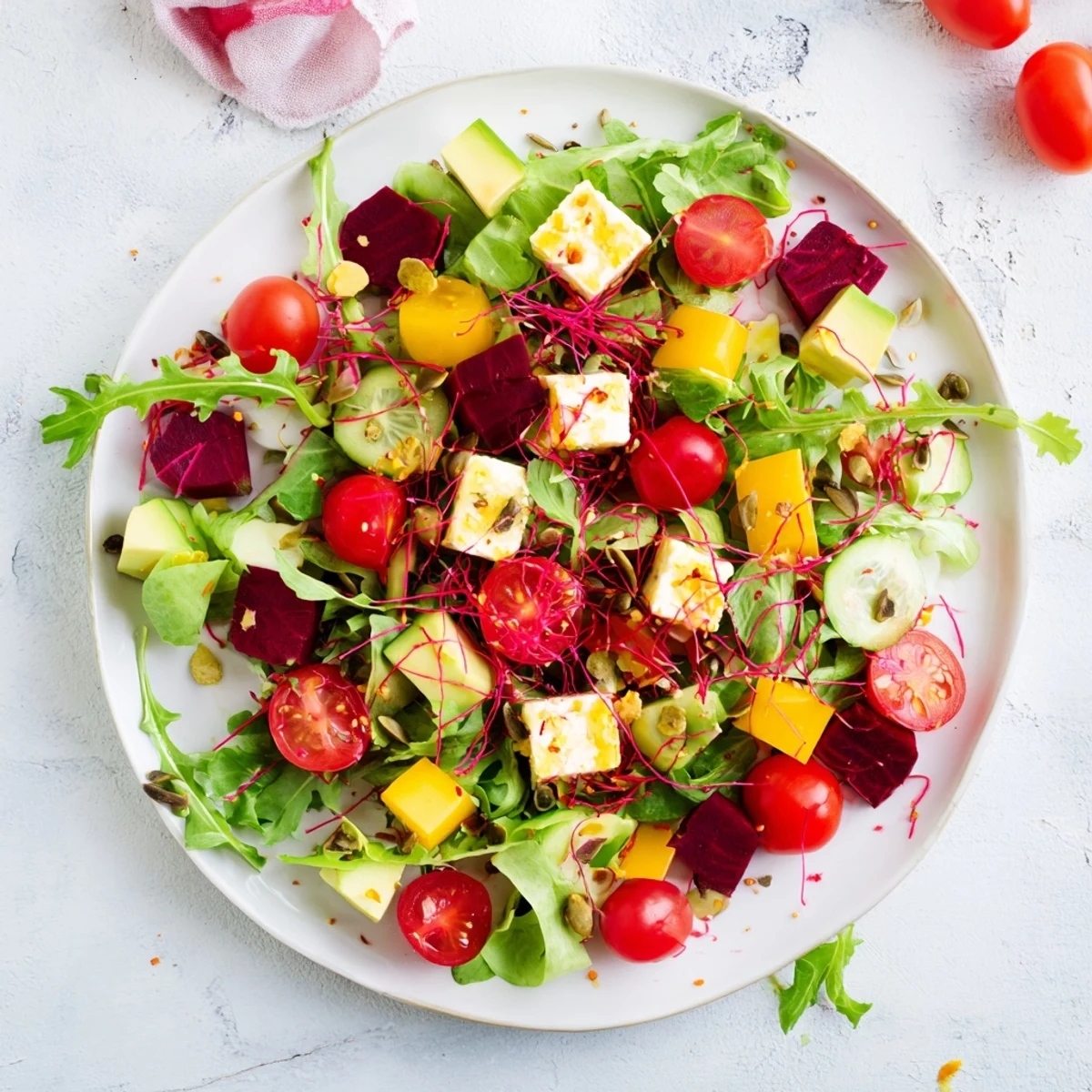 Once you understand the philosophy of this salad, you can play endlessly. I've added edible flowers—pansies and nasturtiums add both beauty and subtle flavor. Roasted purple sweet potatoes bring earthiness and stunning color. Sometimes I swap the feta for vegan cheese when cooking for plant-based friends, and honestly, the salad loses nothing. The core idea is contrast and color, so let your pantry and your imagination guide you. The vegetables you choose should be whatever is freshest and most beautiful at your market that week.