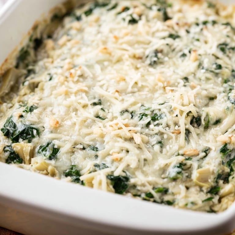 Save I used to think dips were just something you threw together at the last minute, until a friend showed up to my place with a bubbling dish of this and I watched it disappear in under ten minutes. The smell alone, garlic and melted cheese mingling with something earthy and green, had everyone hovering around the oven before it even cooled. I asked for the recipe that night and have been making it ever since, tweaking it just enough to call it my own. It's become my go-to whenever I need something that feels indulgent but doesn't require much fuss. There's something about the way the artichokes soften into the cream and the spinach adds little pockets of flavor that makes every bite feel intentional.