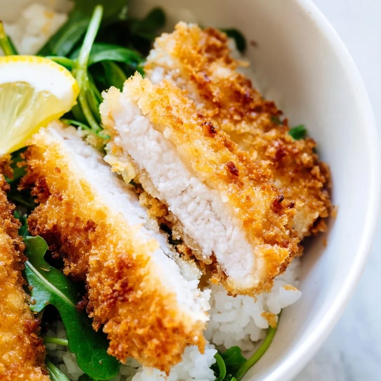 My husband took one bite and immediately asked if this could become a weekly rotation. Theres something about that Italian-Japanese mashup that just works—the umami from the Parmesan, the brightness of the lemon, the way the bitter greens cut through the fried coating. It's the kind of meal that makes weeknight dinners feel special without the exhaustion.