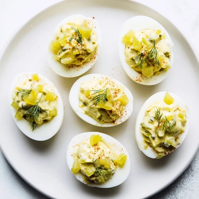 Save I was helping set up a baby shower when someone popped open a jar of dill pickles near the deviled egg tray, and the briny smell hit me like inspiration. What if I just… added some? That batch disappeared faster than any deviled eggs I'd made before. Now I keep pickle juice in a little squeeze bottle just for this recipe, and people always ask what makes them taste so bright.