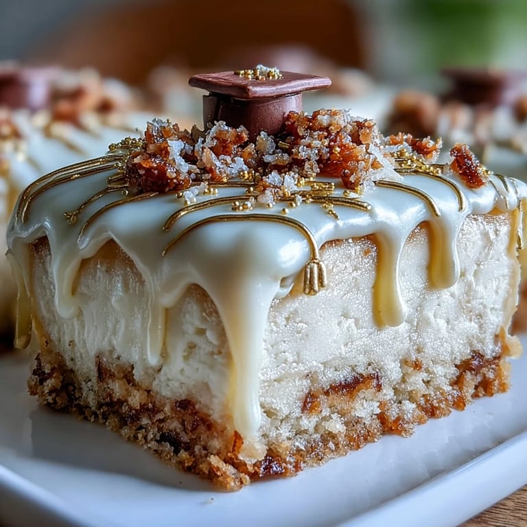 Save There was a subtle thrill in the air the first time I tackled this Gold Drip Graduation Sheet Cake& the kitchen felt electric& abuzz with anticipation. I recall how the sunlight dappled onto my counter& illuminating gold luster dust scattered across the table. Watching the drip settle along the cake edge& I marveled at how a celebration could translate so vividly into dessert. This cake promises not just sweetness& but a dazzling statement—a fitting tribute for any proud graduate.