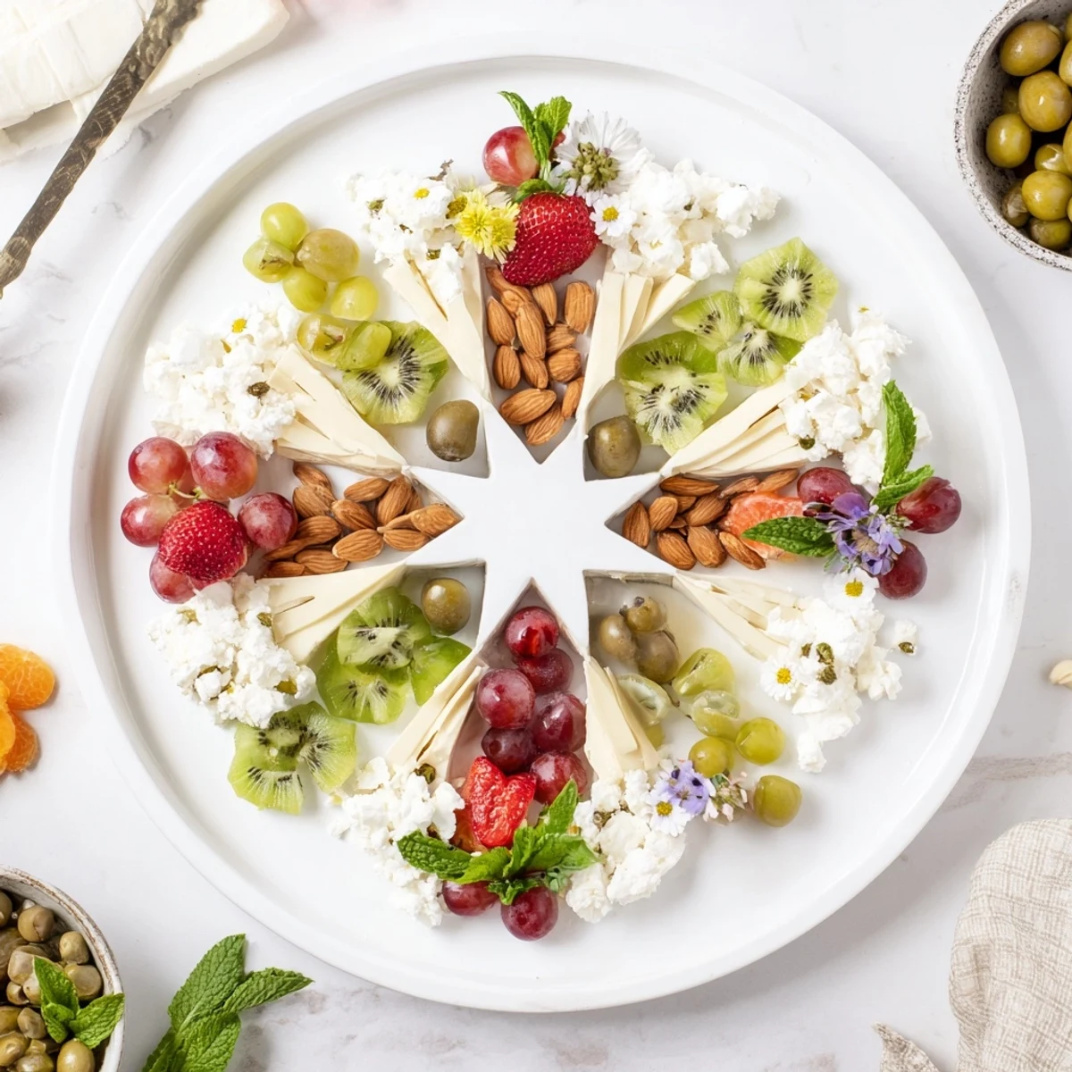 - Scatter almonds and olives in small piles throughout. These aren't just functional—they catch light and create shadow, making the whole platter feel three-dimensional. Don't distribute them evenly; let some areas feel more abundant than others