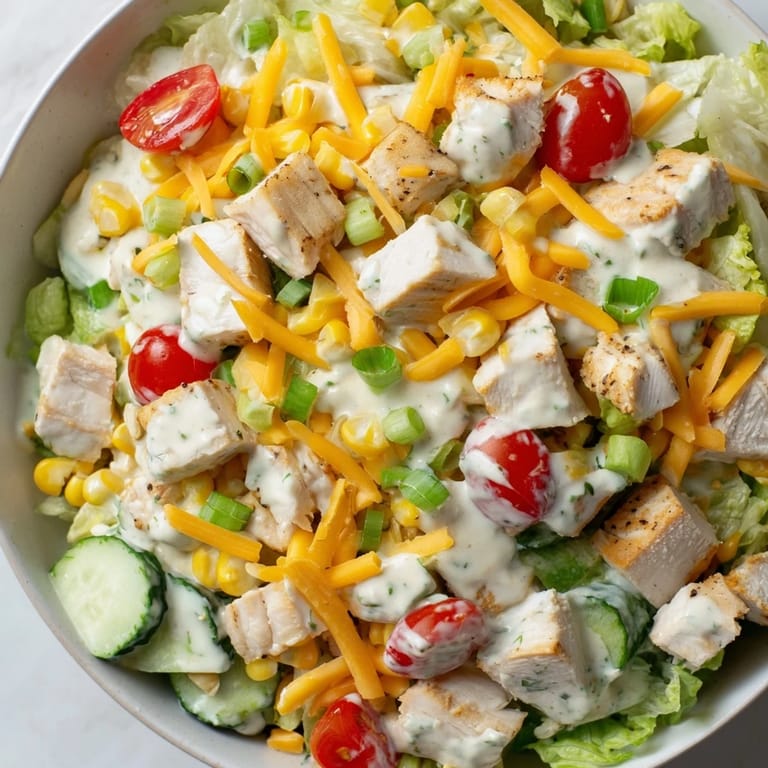 Save My sister texted me at 2 PM on a Tuesday, claiming she'd discovered the perfect salad. I was skeptical, but she showed up with a bowl of this chopped chicken situation and honestly, I couldn't stop eating it. The crunch of fresh vegetables against that creamy ranch hits different, especially when the dressing actually makes you feel good about what you're eating.