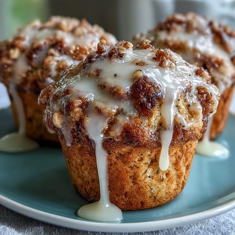 - Drizzle the glaze over each cooled muffin and let it set for about 10 minutes so it firms up slightly. This small wait makes a real difference in texture.