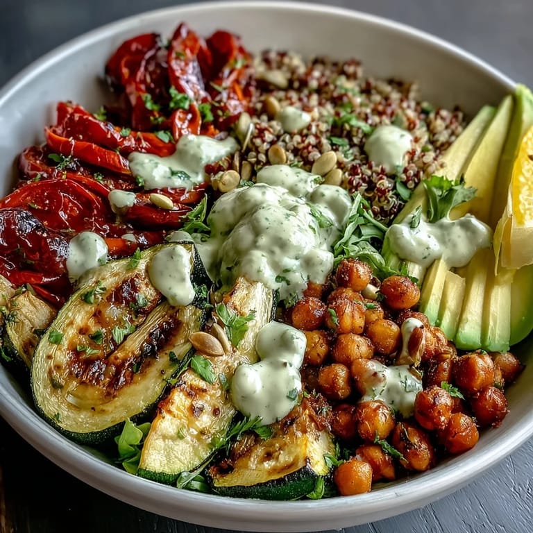 Save There's something about assembling a bowl that feels like painting on a plate. I discovered this particular combination on a Tuesday afternoon when my fridge was overflowing with farmers market vegetables and I couldn't decide what to make for dinner, so I just roasted everything, tossed it over some quinoa, and drizzled it with tahini. My partner took one bite and asked why we weren't eating like this every week. That question stuck with me, and now this bowl is what I reach for when I want something that tastes intentional but doesn't require overthinking.